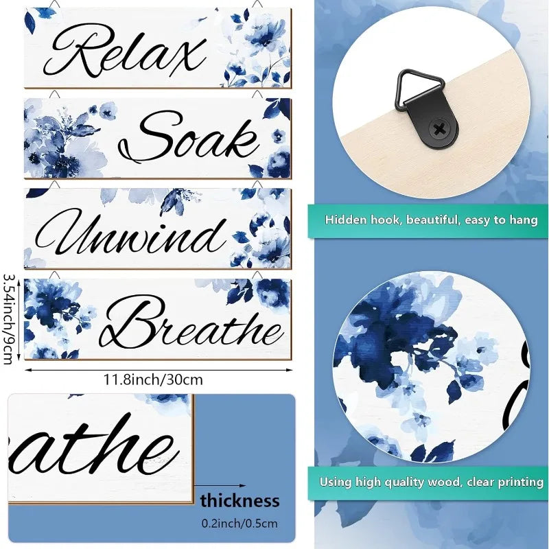 4Pcs Mushroom & Floral Bathroom Wall Art Set