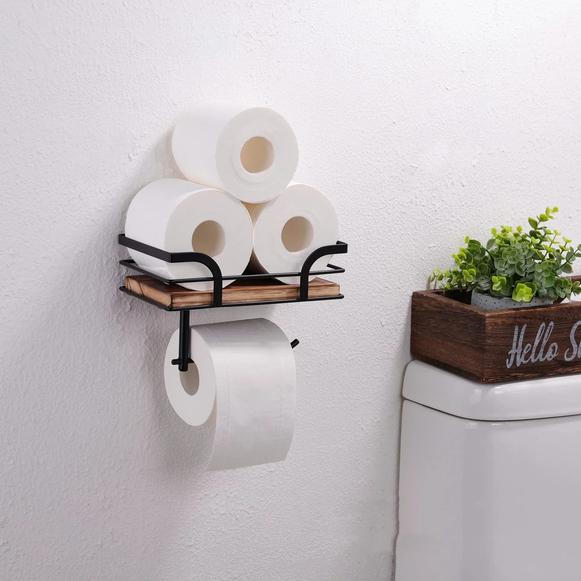 Rustic Farmhouse Bathroom Shelf – Wood & Black Metal Decor